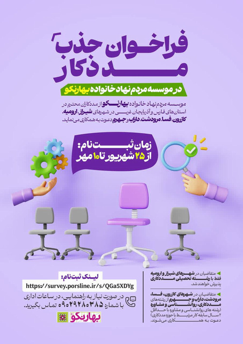 فراخوان جذب مددکار در موسسه مردم نهاد خانواده بهار نکو شهرستان مرودشت